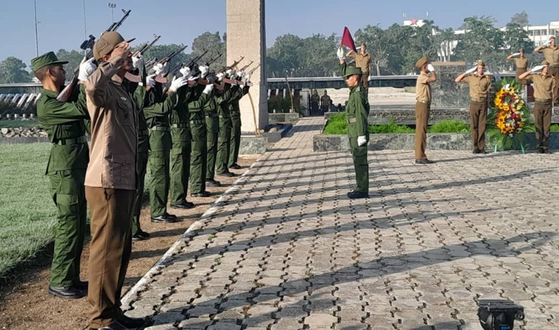 A 45 años del entierro cubano del héroe en su tierra natal, se rindió tributo a una de las figuras más representativas de la historia patria, donde participó Joel Queipo Ruiz, miembro del Comité Central y Primer Secretario del Partido en Holguín, Osmany Viñals García, secretario del Partido en el municipio cabecera, dirigentes de organizaciones políticas y de masas, e integrantes de la Brigada de Solidaridad Calixto García.