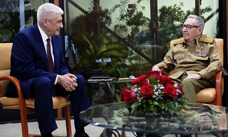 El General de Ejército Raúl Castro Ruz recibió al Ministro del Interior de la Federación de Rusia, General de la Policía Vladimir Alexandrovich Kolokoltsev.
