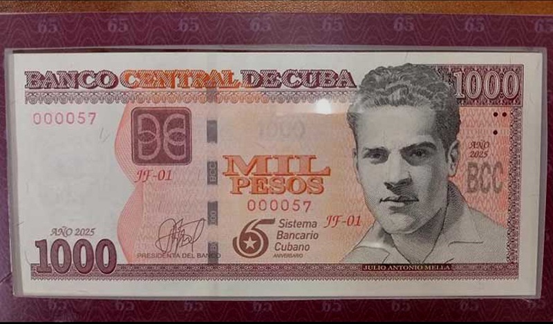 El Banco Central de Cuba (BCC) informó sobre la puesta en circulación de una nueva emisión especial del billete de 1000 pesos cubanos (CUP), en homenaje al aniversario 65 del sistema bancario nacional.