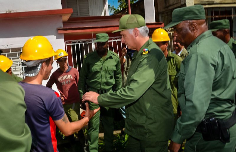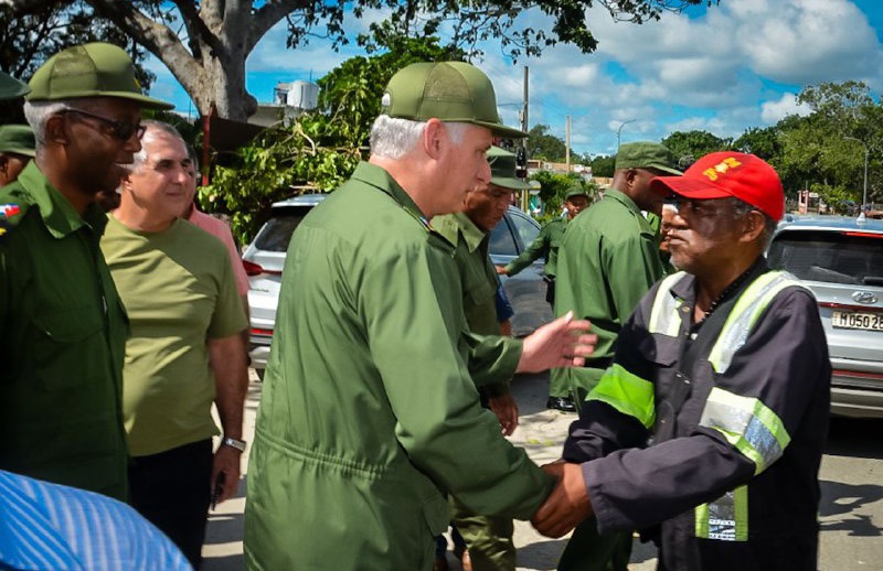 Durante su recorrido por el territorio, el Primer Secretario del Comité Central del Partido Comunista de Cuba (PCC) chequeó el estado de la infraestructura eléctrica, el funcionamiento de los centros de evacuación y los avances en las labores de limpieza y remoción de escombros.