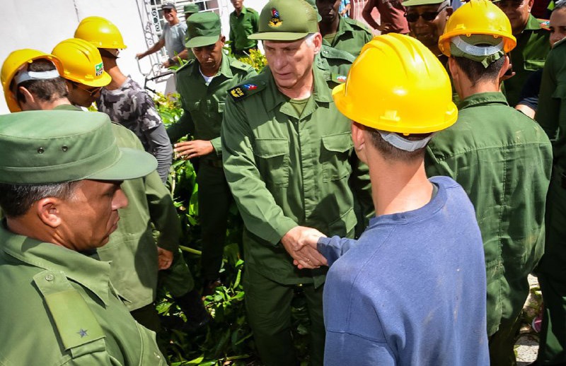 El Presidente conoció que, en la recuperación de redes y equipamientos afectados, contribuyen contingentes procedentes de Ciego de Ávila y Mayabeque, que suman más de 170 hombres, a los que se unen brigadas locales y personal del Ministerio de Energía y Minas, que afrontarán jornadas laborales superiores a las 14 horas diarias.