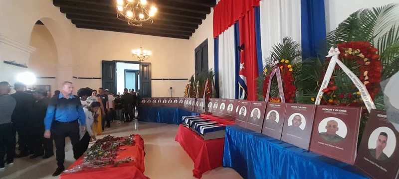 Los integrantes del Comité Central, Joel Queipo Ruiz, Primer Secretario del Partido en la provincia, y el General de División, Eugenio Armando Rabilero Aguilera, Jefe del Ejército Oriental, presidieron la ceremonia. La sala Revolución del Museo Provincial La Periquera, consagró la eterna presencia de los mártires de la patria. Las máximas autoridades del territorio, encabezaron el adiós de todo un pueblo, junto a los familiares de los héroes. Ante sus miradas los restos mortales de cinco hijos de esta tierra, caídos durante el ataque a Venezuela, ordenado por el gobierno de los Estados Unidos.