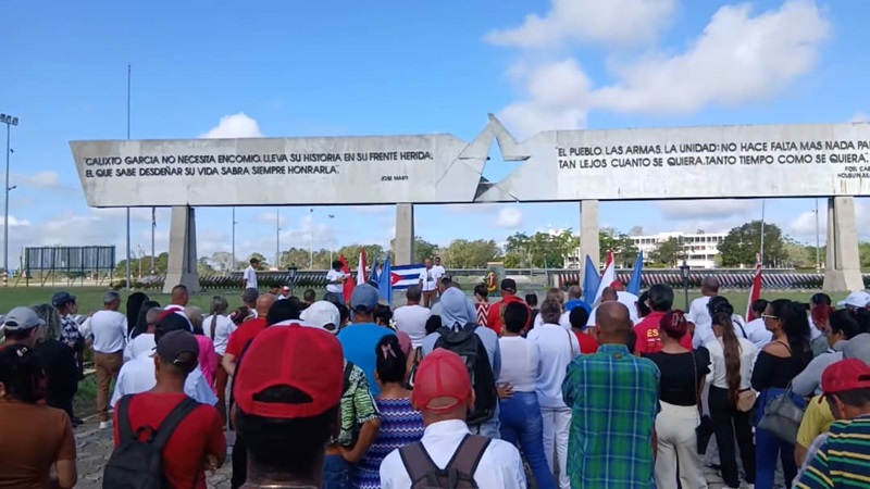 Con una ofrenda floral depositada en el sitio escultórico de la Plaza de la Revolución "Calixto García Iñiguez", inició el acto donde se reconoció a la Empresa de Servicios a Trabajores de la Construcción "Garbo" de Holguín como Colectivo Vanguardia Nacional.