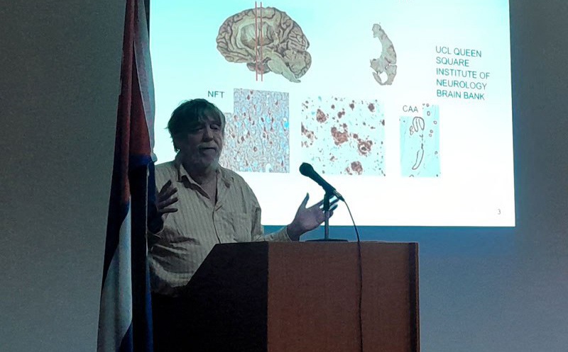 John Anthony Hardy, eminente científico de esa institución británica, compartió este miércoles algunas manifestaciones de la enfermedad de Alzheimer y los proyectos para su estudio y tratamiento desarrollados a nivel internacional.